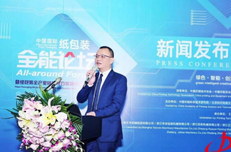 緊接著,蔣元雷先生代表發(fā)起單位中德集團(tuán)發(fā)表講話(huà)。本屆全印展,中德集團(tuán)各子公司(上海天岑、浙江華岳、浙江勁豹、浙江正潤(rùn)以及瑞安華威)均展出了最新的創(chuàng)新產(chǎn)品,這些設(shè)備剛好契合CIPP2019的主題“綠色•智能•創(chuàng)意•互聯(lián)”。蔣元雷先生在發(fā)言中表示,在新的市場(chǎng)形勢(shì)下,如何盡快追趕世界先進(jìn)水平,縮小因思想觀念、技術(shù)瓶頸乃至企業(yè)管理諸多因素形成的差距,成為所有印刷人目前的重要課題。要想為這個(gè)課題提交一份符合市場(chǎng)規(guī)律、科學(xué)的答卷,不能單憑設(shè)備制造商的一己之力,而是需要一個(gè)更加強(qiáng)大有力的平臺(tái)。CIPP就是這樣一個(gè)平臺(tái)。在這個(gè)平臺(tái)上,我們需要集合全國(guó)乃至世界范圍內(nèi)經(jīng)驗(yàn)豐富的、有獨(dú)到創(chuàng)意的印刷包裝實(shí)踐者們和專(zhuān)家學(xué)者們,共同深入思考、廣泛溝通、積極摸索,走出一條更理智、更明確、更便捷而又符合印刷包裝企業(yè)長(zhǎng)足發(fā)展的道路。